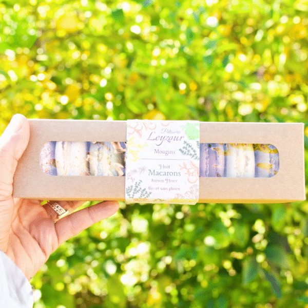 Coffret de 8 macarons collection Hiver ( Citron, Clémentines, Caramel au beurre salé, Praliné, Combawa, Pin Sylvestre, Thym&Miel, et Chocolat).